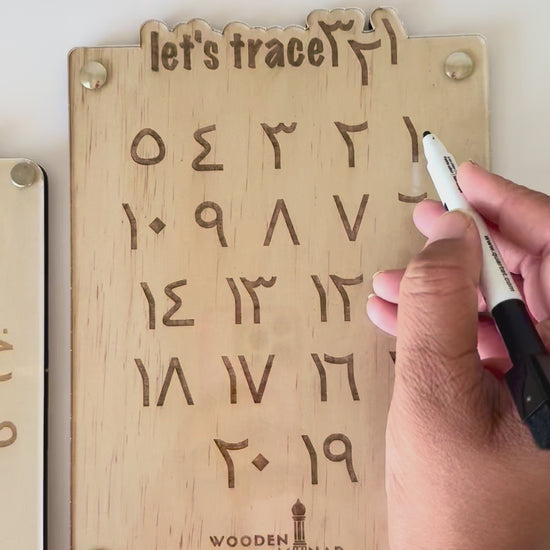 Make learning numbers fun and interactive with our Arabic Number Tracing Board! Designed with a sturdy wooden base and a wipeable plastic cover, this board allows children to practice tracing numbers 1 through 20 in Arabic again and again.